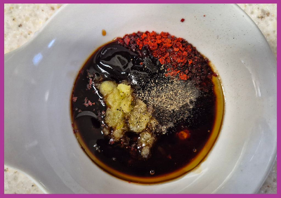 알룰로스 1T, 참기름 1T, 후춧가루 톡톡