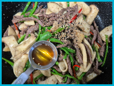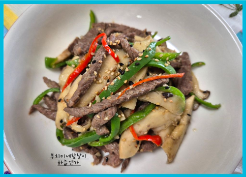 감칠맛이 좋은 소고기 새송이버섯 볶음입니다.