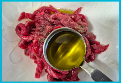 고기 밑간:뽕잎죽염 1/2t, 후춧가루 톡톡, 올리브오일 1.5T