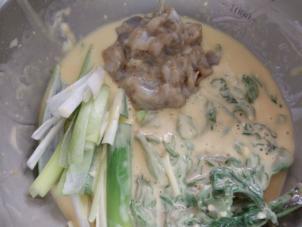 반죽- 부침가루127g,돼지감자전분33g,달걀3개,물130ml,죽염