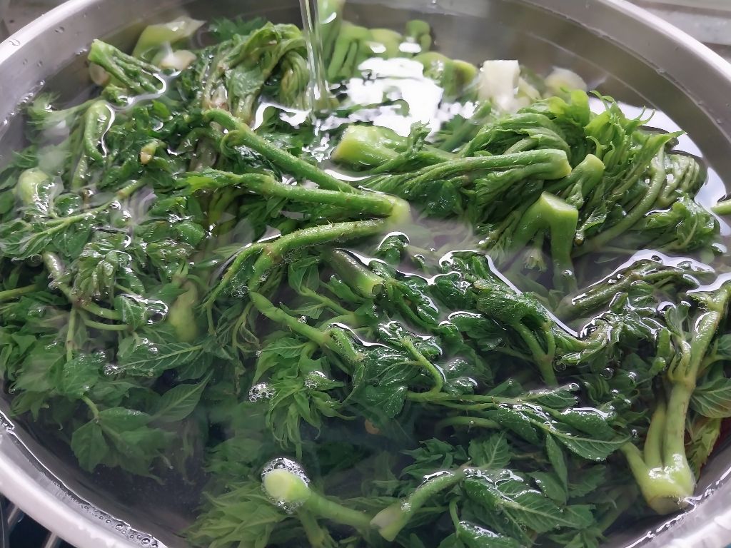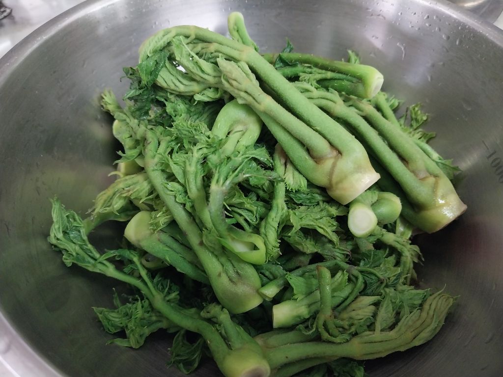 두릅 손질하여 씻어 건져
