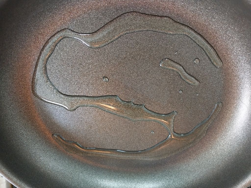 포도씨유 넣은 가열한 팬에 반죽 올려