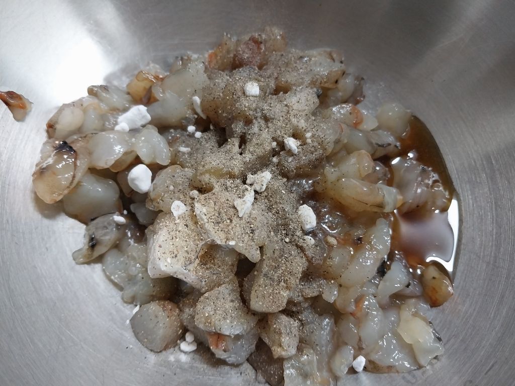 새우 밑간- 죽염 2꼬집,참기름,후추