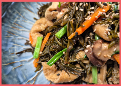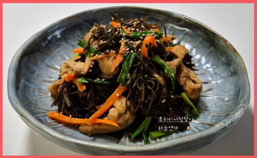 오돌한 식감의 톳에 감칠맛이 좋은 유부를 넣고 만든 톳 볶음~