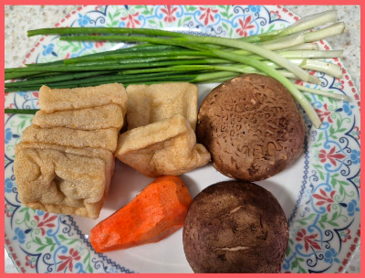 유부와 표고버섯, 당근, 쪽파를 준비~