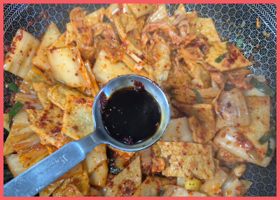 재료:사각어묵 2장, 김치 235g, 대파 28g, 다진마늘 1/2T, 간장 1/2T