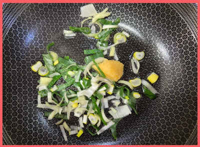 식용유를 두른 팬에 다진마늘과 대파를 담아 볶은 후~