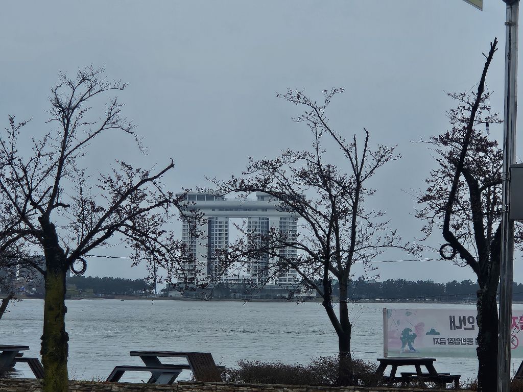 멀리 줌으로 당겨서 쌍둥이 호텔도..