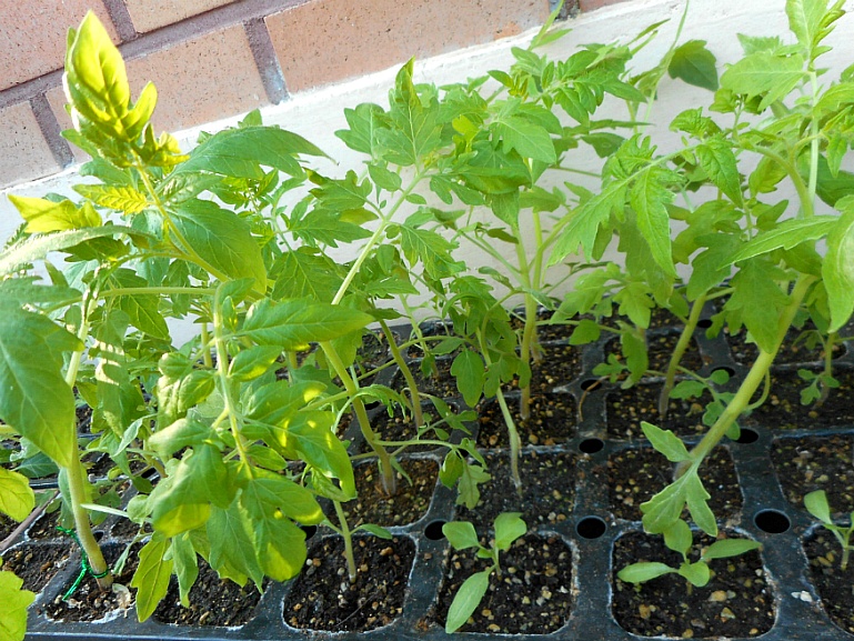 토마토 파종한 지 65일째. 3월 중순 이후엔 맑은 날이면 실외로 나가 햇빛을 쬐기도 했지만 맑은 날보다 흐린 날이 많았던 관계로 거의 실내에서만 지내야 했다. 그래서인지 내가 잘 못 키워서 그런지는 몰라도 토마토 모종이 들쑥날쑥이다. 어떤 모종은 6절, 7절 잎까지 나온 반면 어떤 모종은 이제 겨우 4절, 5절 잎이 나오는 상태다. 싹은 거의 비슷한 시기에 나왔는데 왜 이렇게 차이가 날까. 조만간 가을재배용 모종을 파종해서 다시 키워 보면 무얼 잘못했는지 알 수 있을런지...