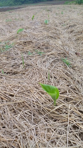 가장 늦게 6월 10일 경에 심었는데 이제야 싹이 나오기 시작하더군. 심고나서도 워낙 가물어서 싹이 나지 않았는데 비가 두어 번 오고 나니 싹이 나오기 시작하였네. 어차피 올 해 수확할 것이 아니므로 상관은 없는 것이지.