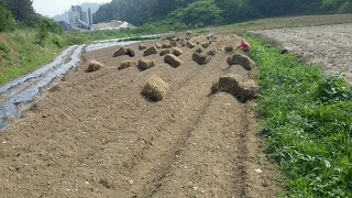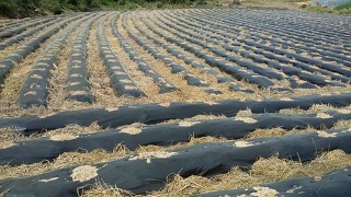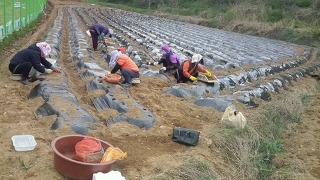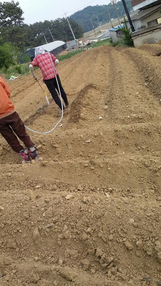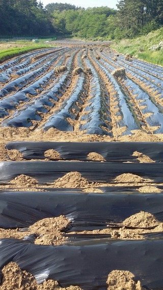 두둑을 높게 하고 비닐 멀칭에 고랑은 볏짚 멀칭.