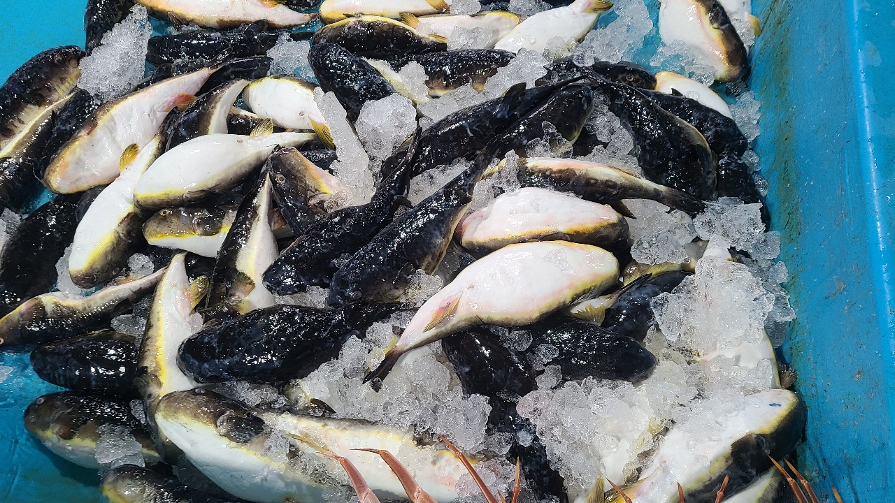 동해 먼 바다에서 잡아온 자연산 복어 입니다