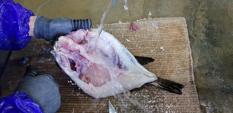 동해바다 에서 잡아온 자연산 복어를 청정해수로 전문가가 직접 손질해 덕장에서 살짝 물기를 뺐답니다