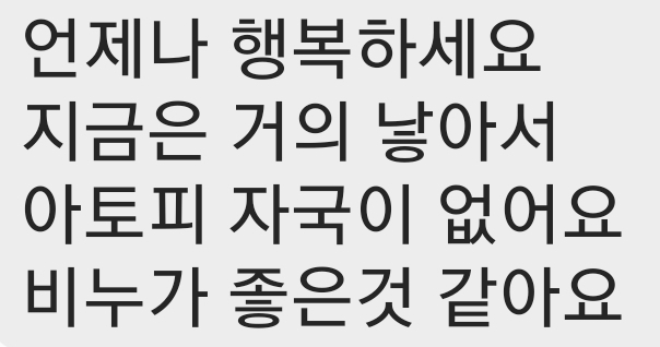 보습제를 바르지 않아도 피부가 당기거나 건조하지 않아요.