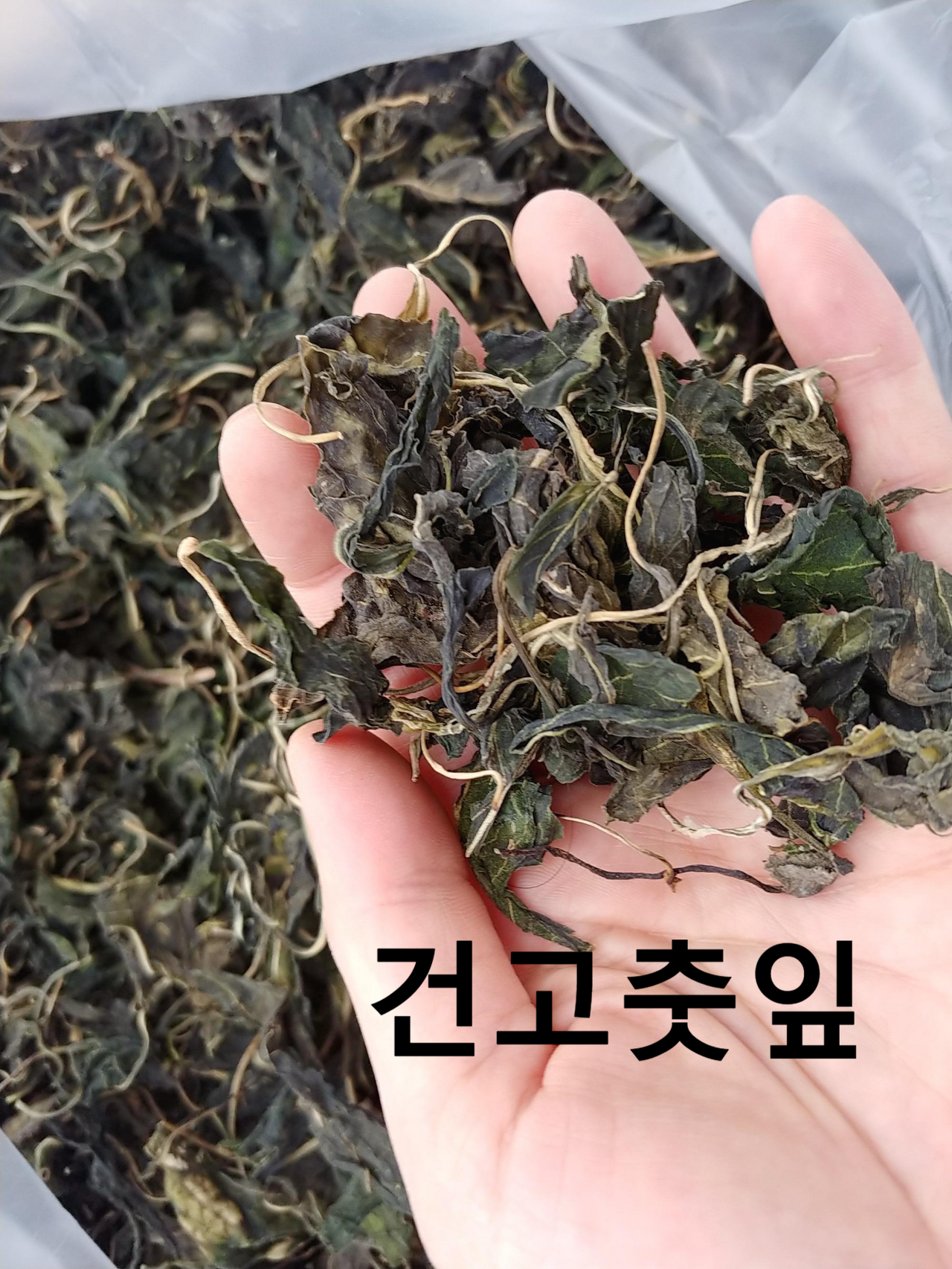< 가을에 삶아서 말려 놓은 건고춧잎 입니다 >