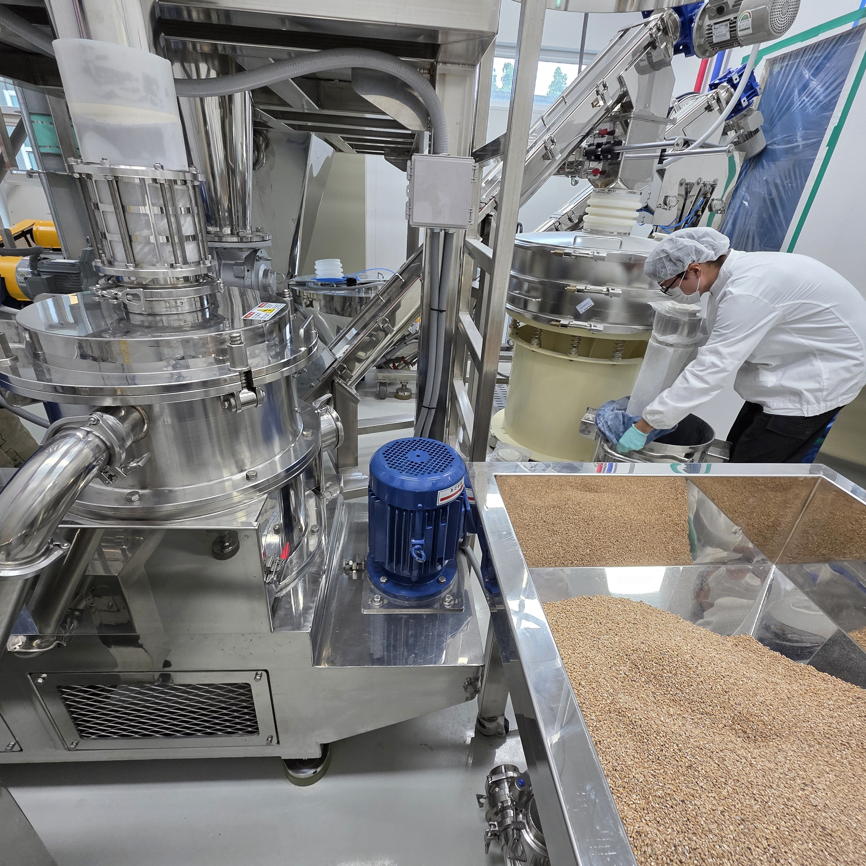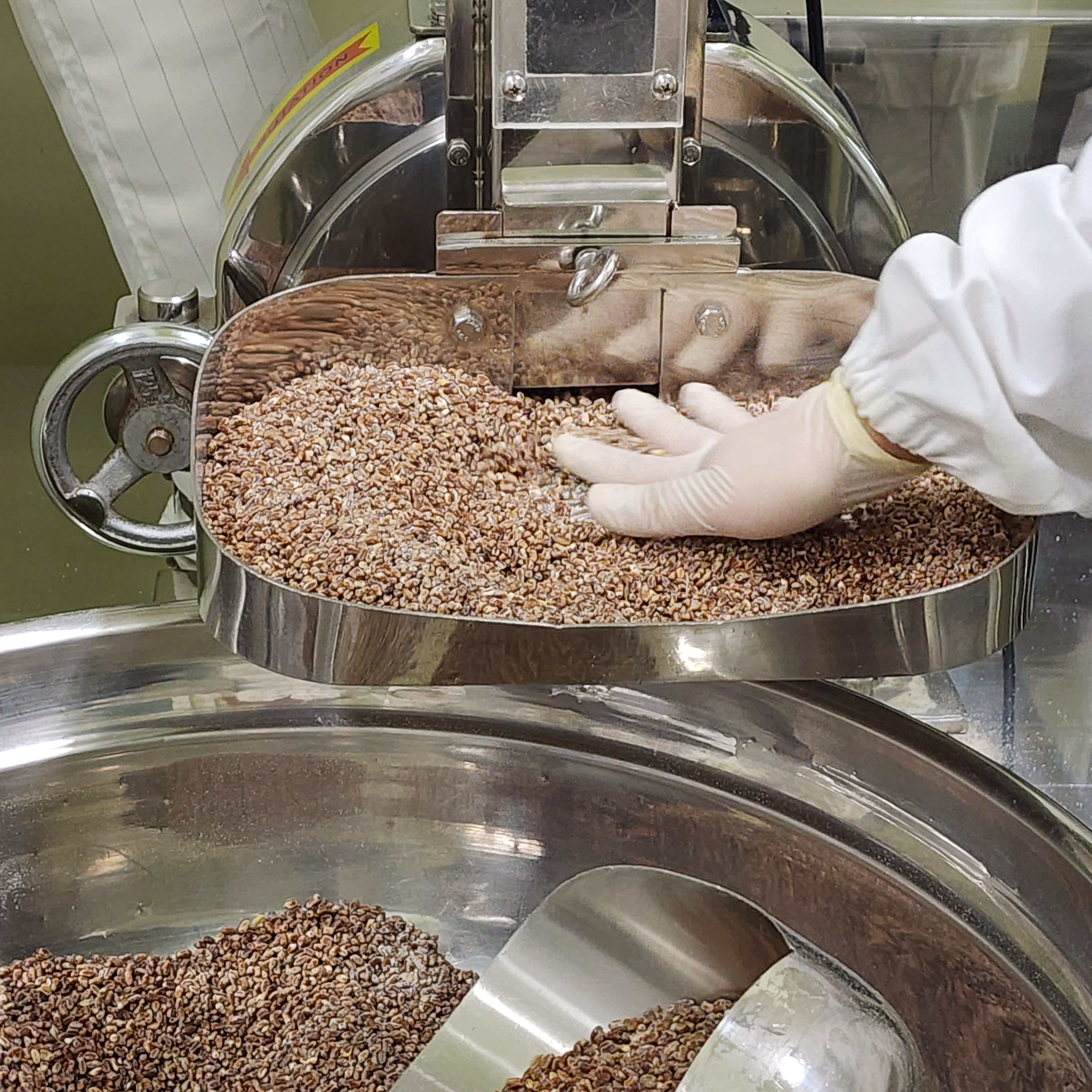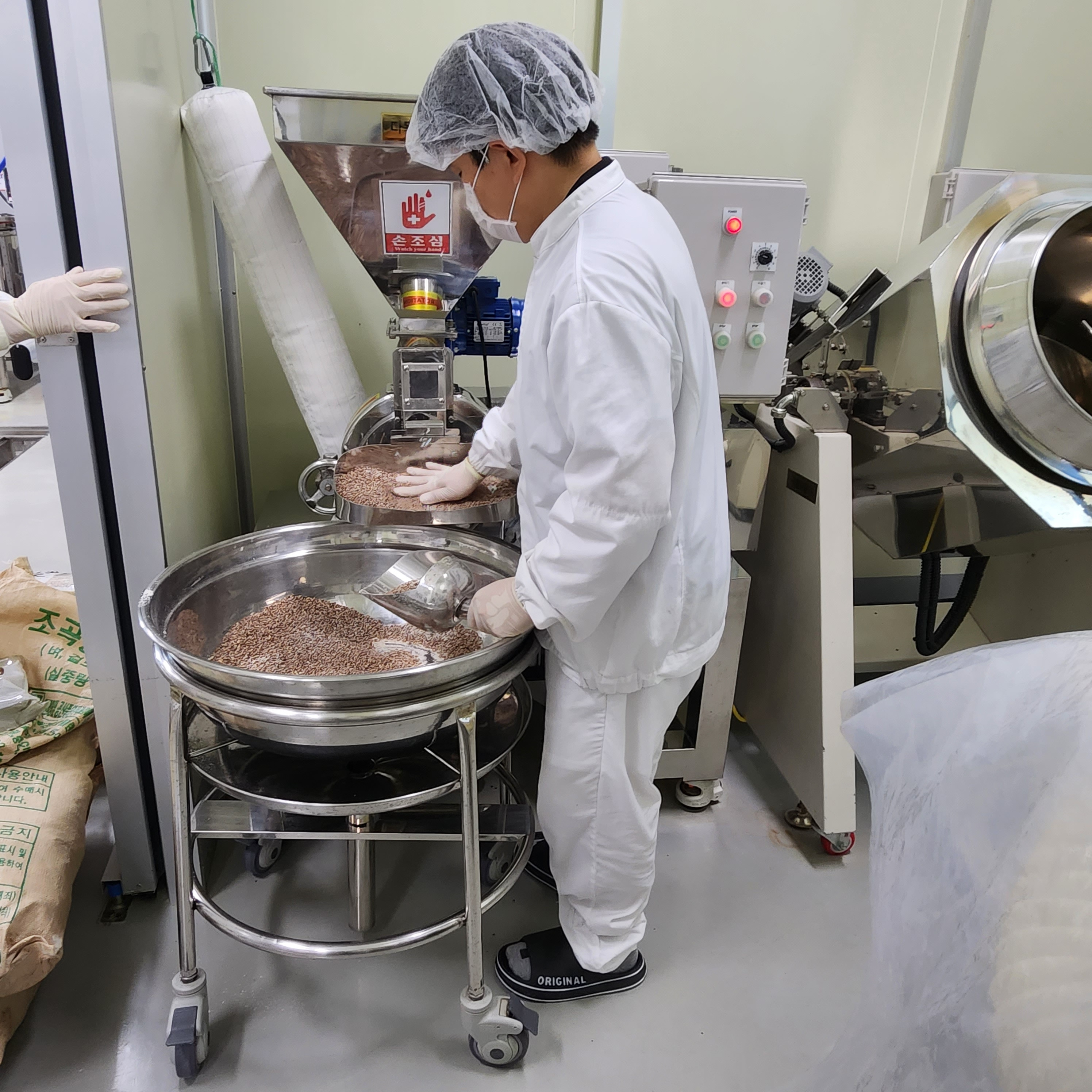 밀껍질을 아주 얇게 도정을 한후 제분기에 넣고 통밀가루로 만듭니다
