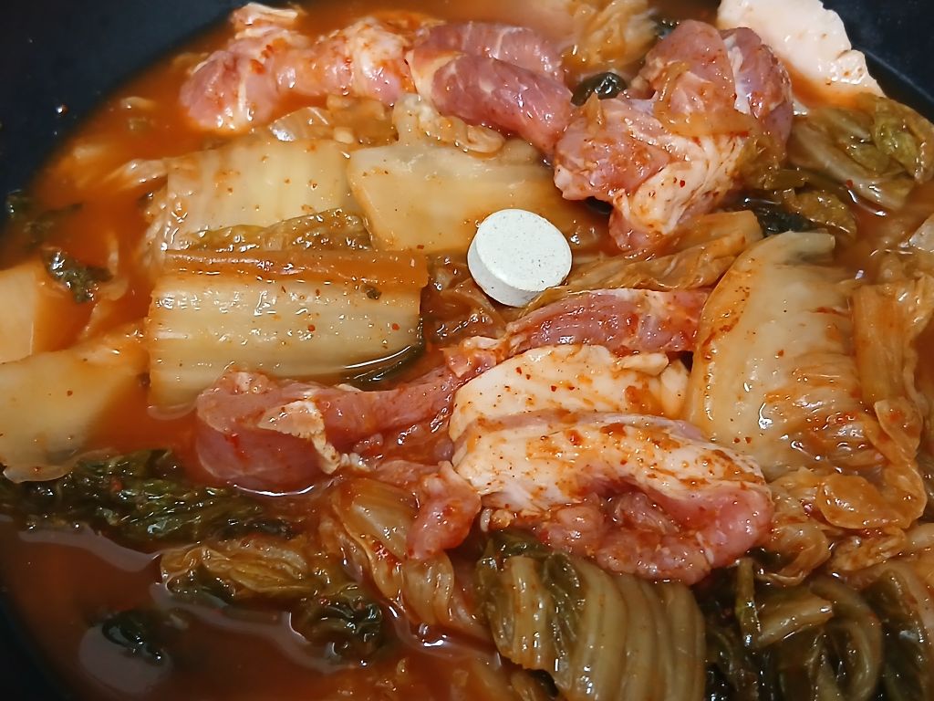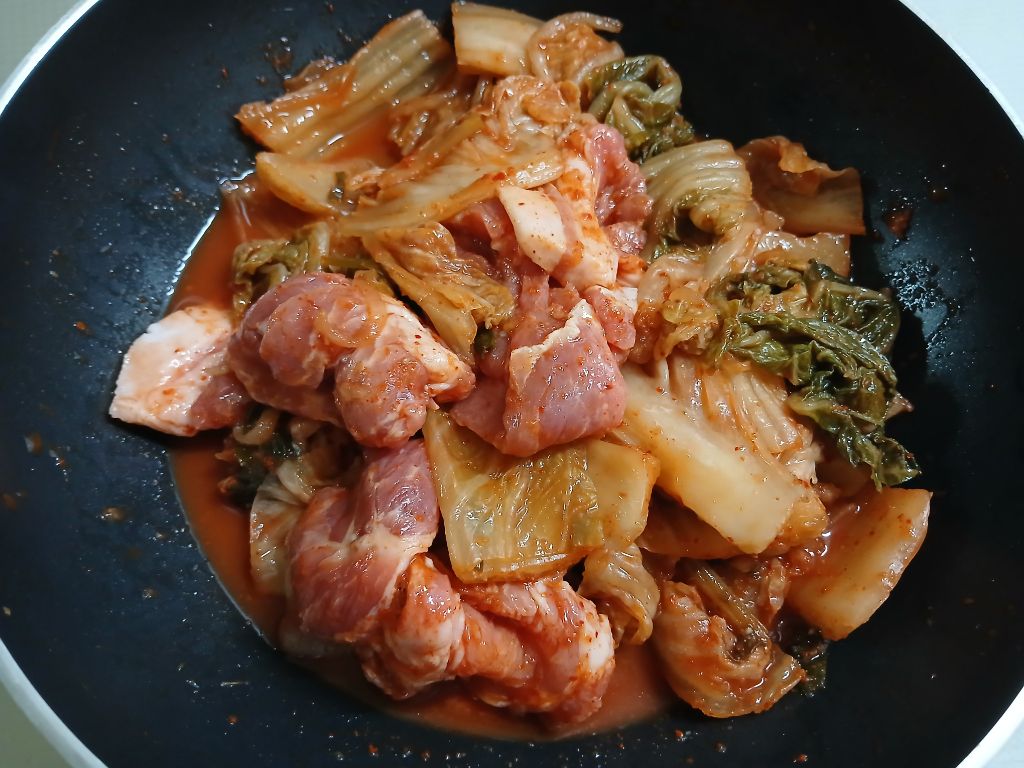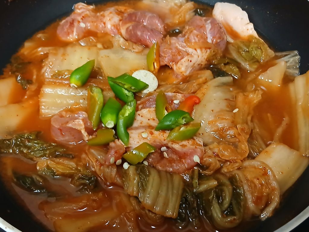 김장김치와 돼지고기목살 남은것이 있어서 넣고 김치찌개 끓입니다