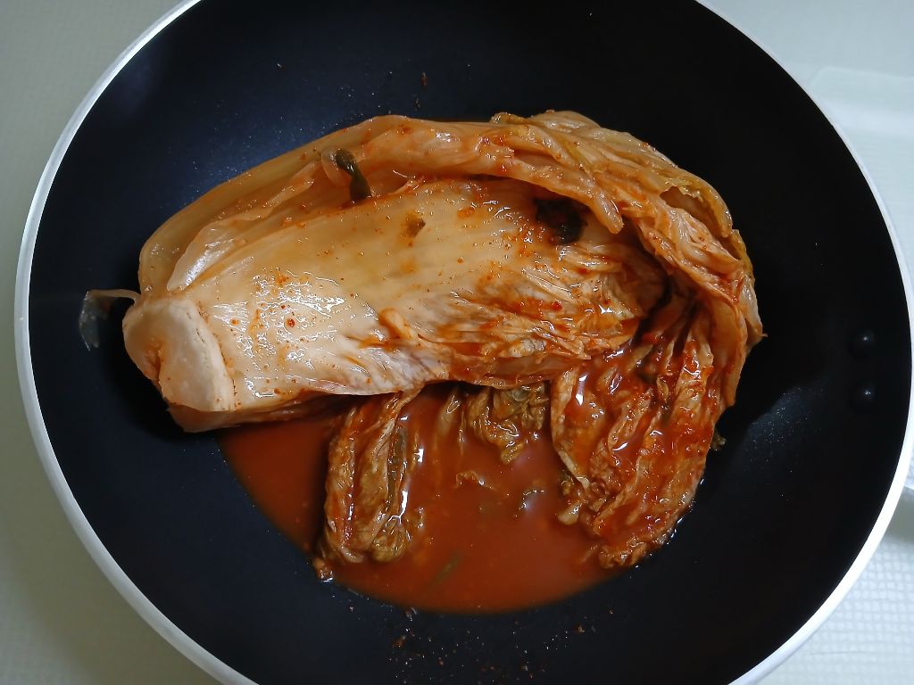 먹기에 좋도록 김치를 썰어서 손으로 주물주물 얼마간의 결을 꺽어주어요