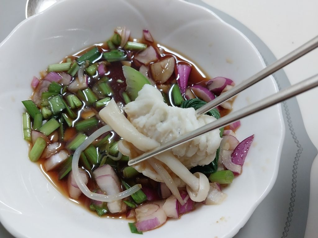 담백한 하모,채소에 칼칼한 간장소스 곁들여 먹기도 하고