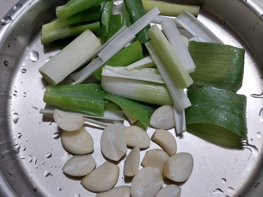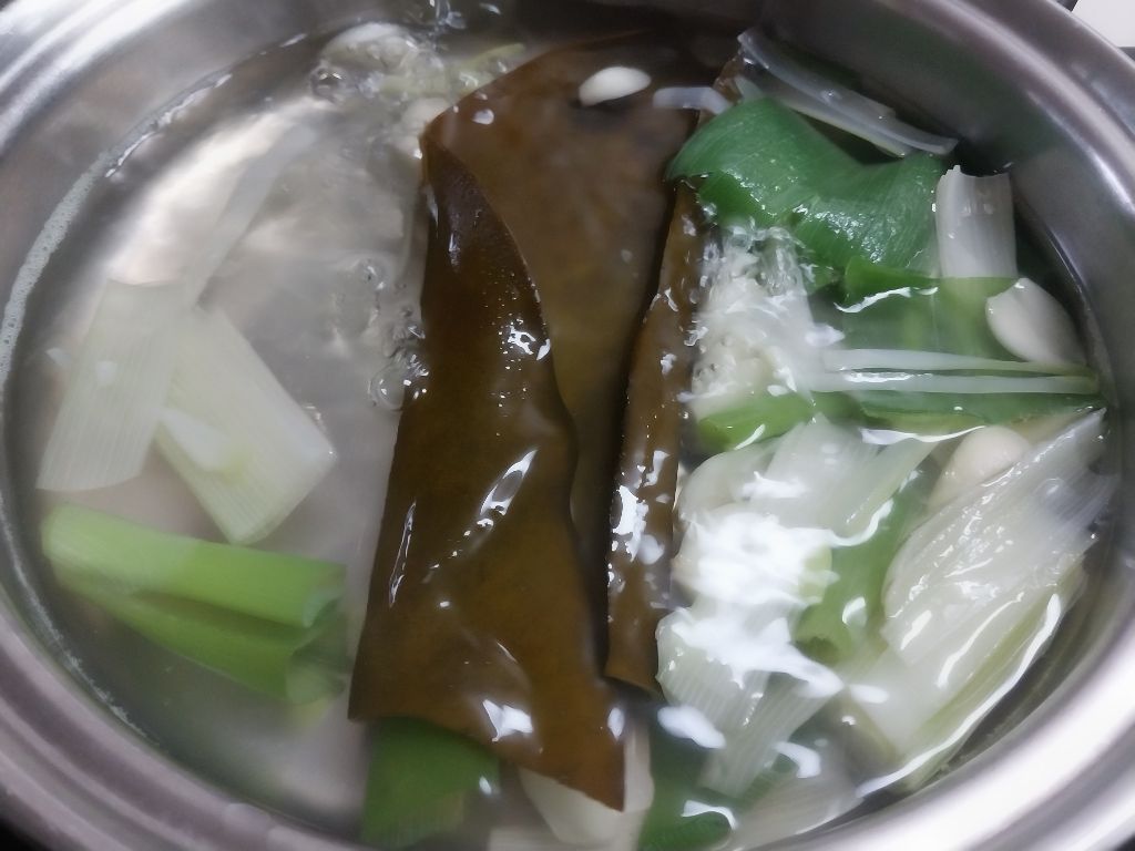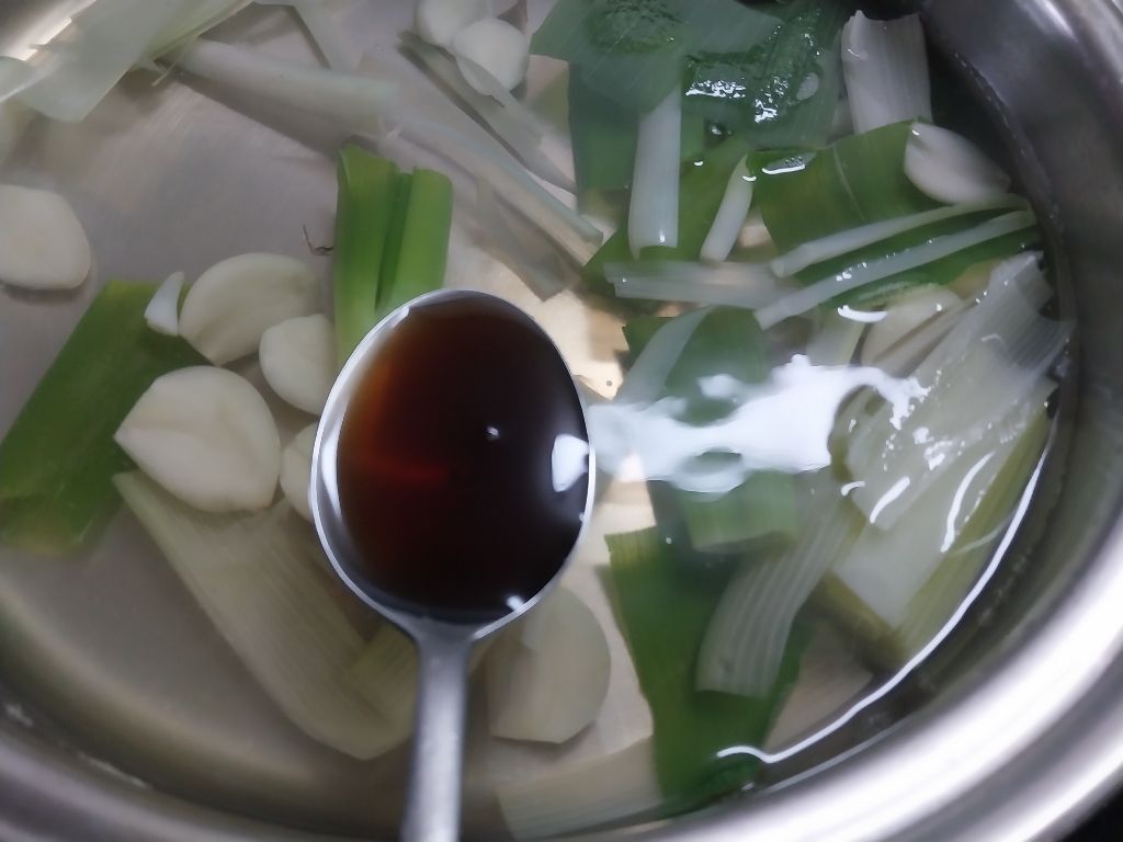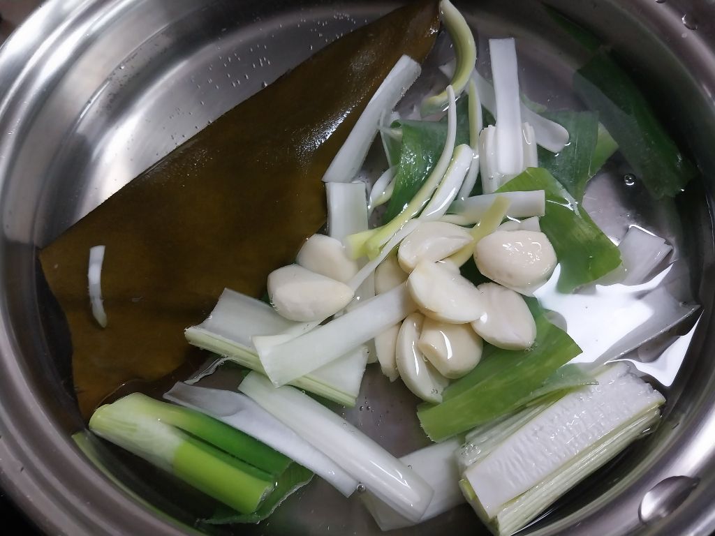 육수- 다시마,정수1800ml,마늘7톨,대파1대,국간장3큰술,참치액1큰술