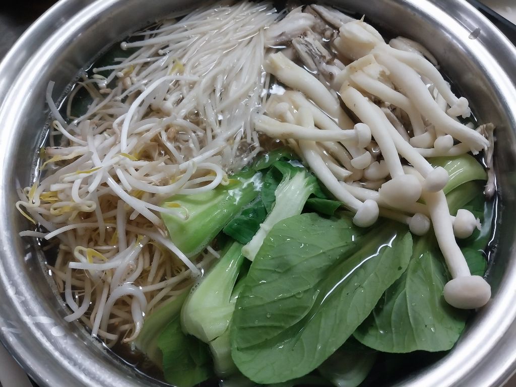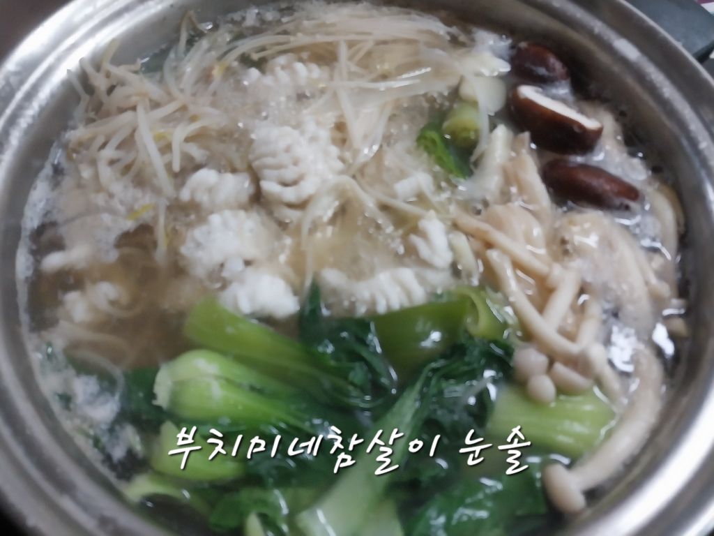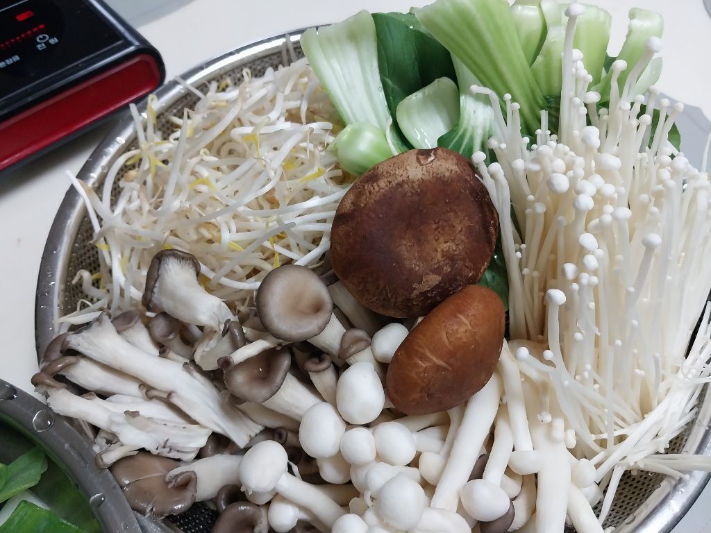 재료- 하모 1팩,팽이버섯,느타리버섯,만가닥버섯,숙주,청경채,자색양파