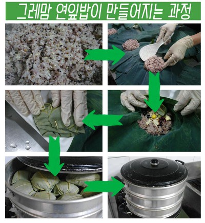 주의:연잎밥만 따로 꺼내서 냉동보관시 수분이 날아갈수 있으니 받으신 그대로 보관을 권합니다.