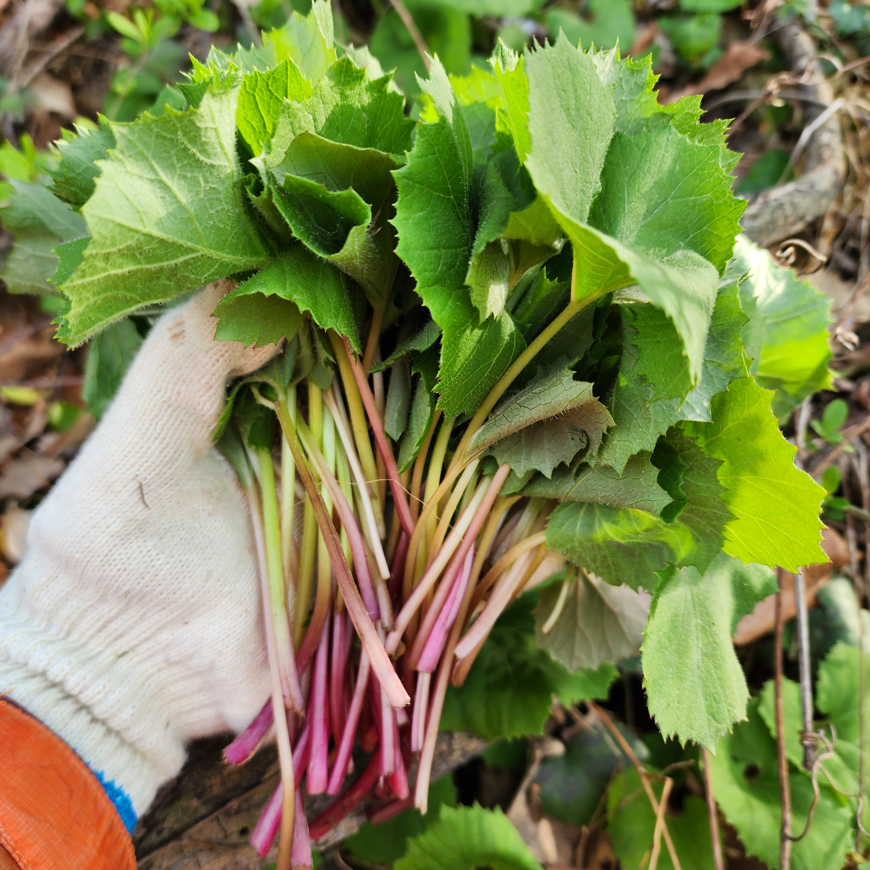 야생에서 자란 어린 머위순 입니다