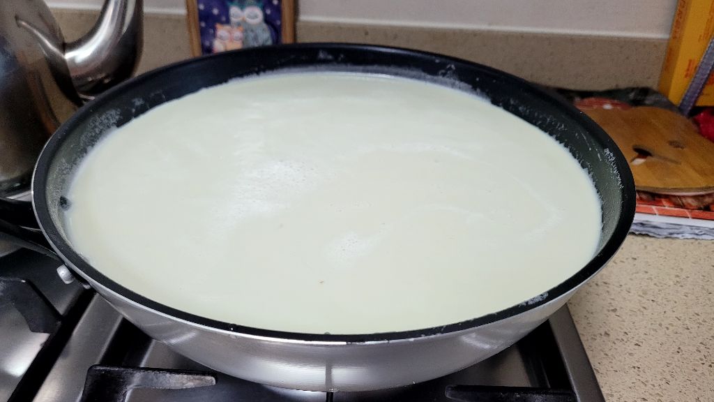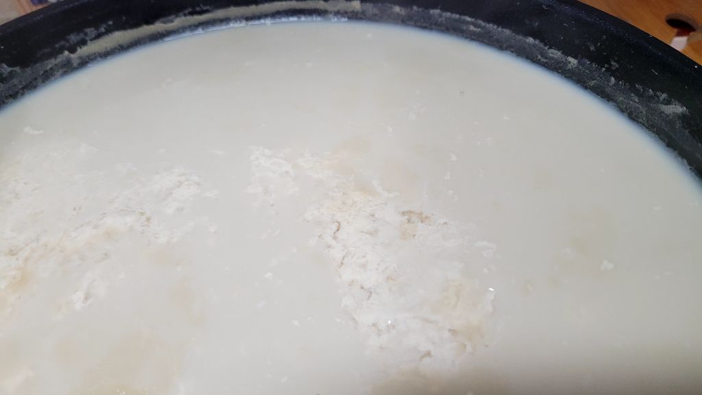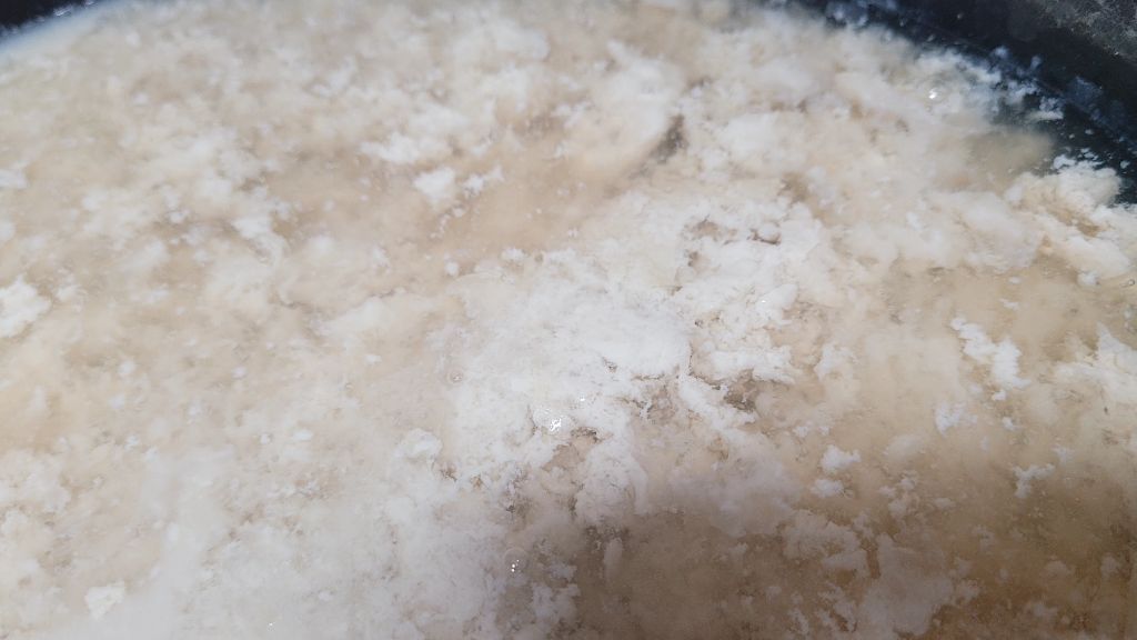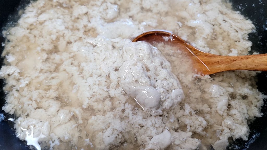 간수 2스푼 정도(콩2컵) 솥 가장 자리로 살살 흩뿌려 준후 지켜보면 몽글몽글 순두부로 만들어집니다(간수는 최소한만 넣으세요)