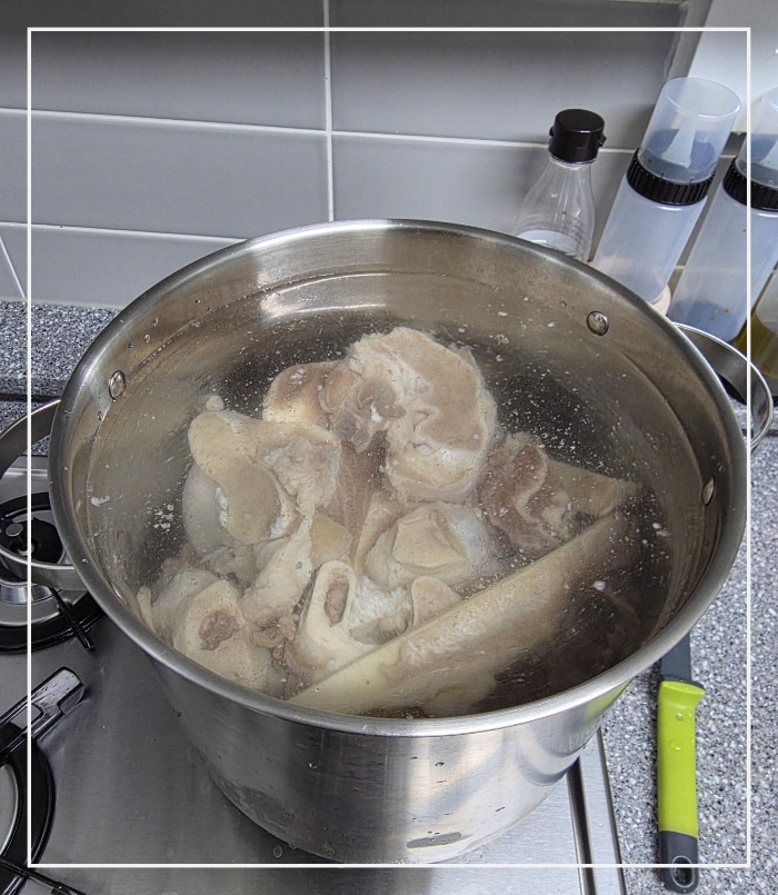 식혀 기름 걷어 내고