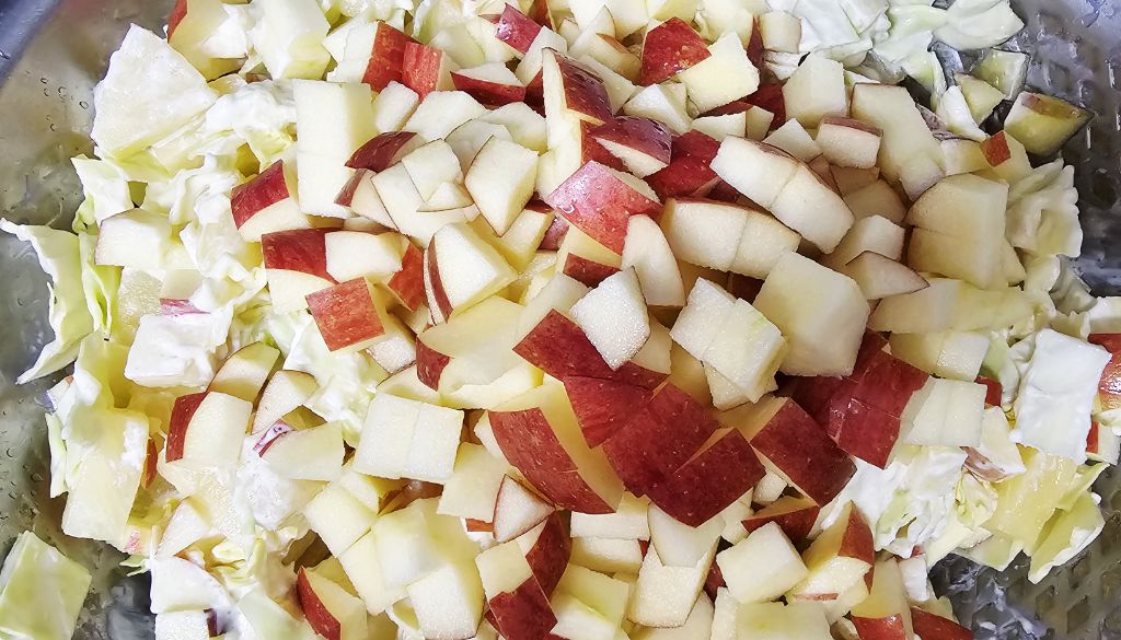 사과.양배추.배.마요네즈 넣어 과일 정리끝