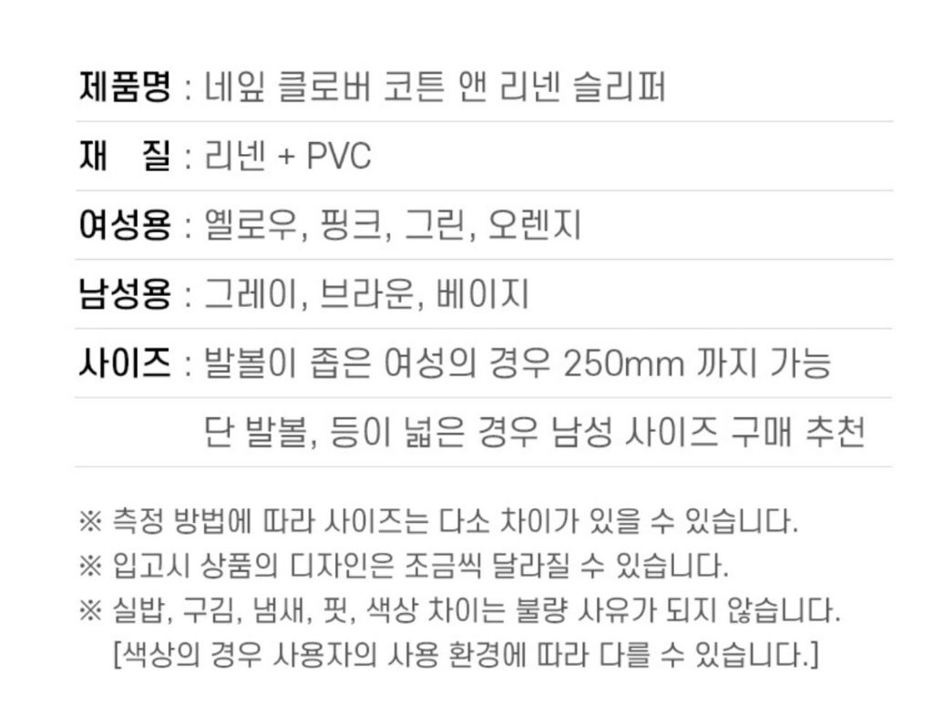 여성용 - 옐로우 / 핑크 / 그린 / 오렌지