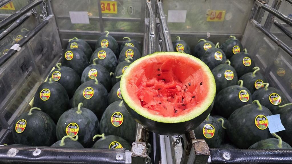 수박표면에 분이 나와있는것이 보기에도 맛이 좋아보입니다.