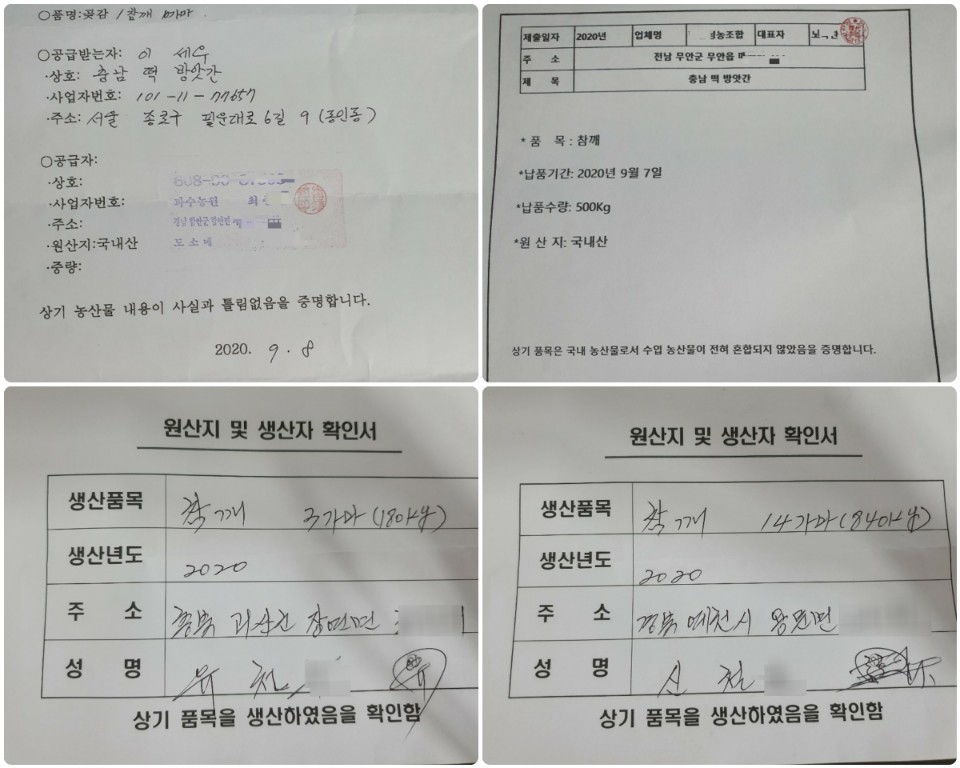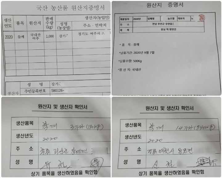 | 영업허가증(2차가공식품),유기농 무농약 인증번호 | |