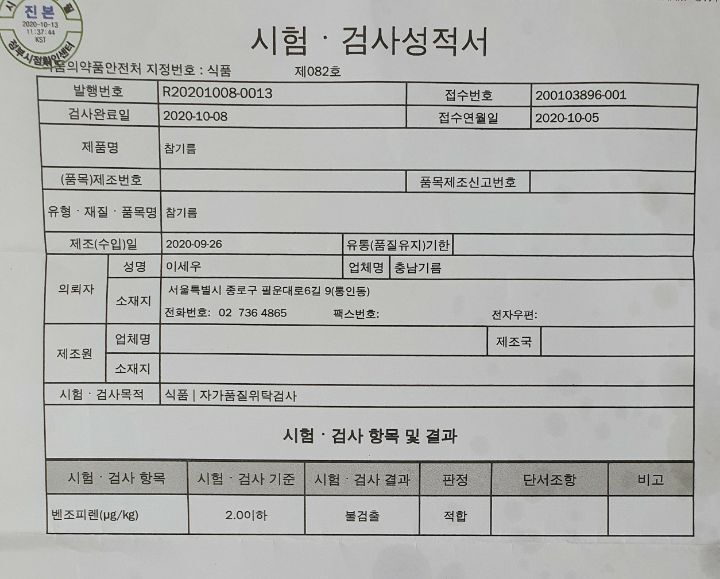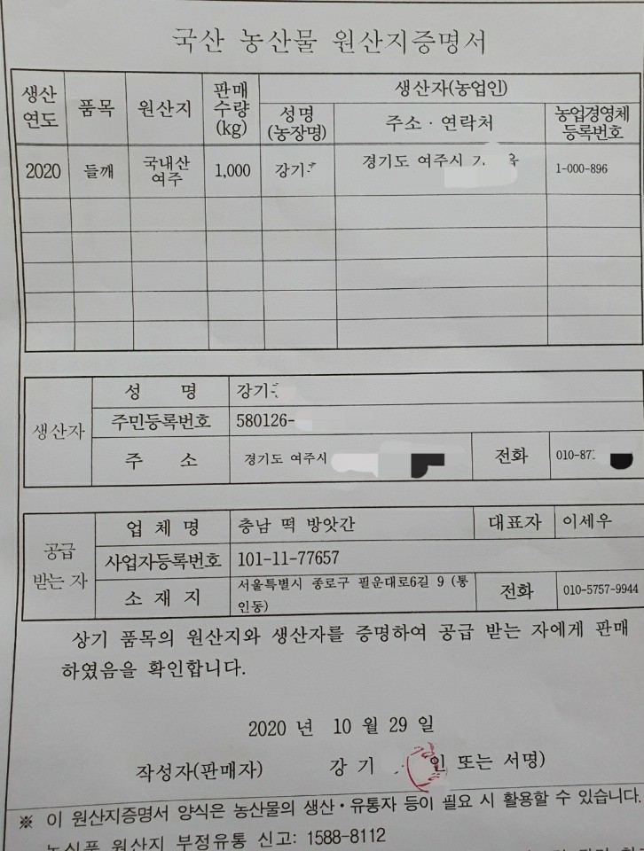 | 생산자 및 판매자와 관계 | 충남방앗간 |
