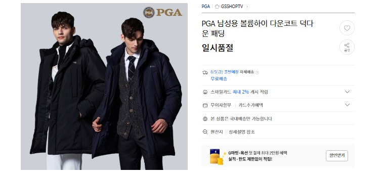 ㅡ PGA 남성 / 여성 헤비다운~
