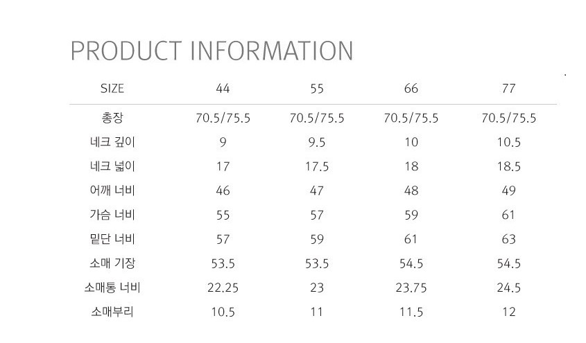 사이즈: 44(실제치수:55)- . 55(실제치수:66) . 66(실제치수:77
