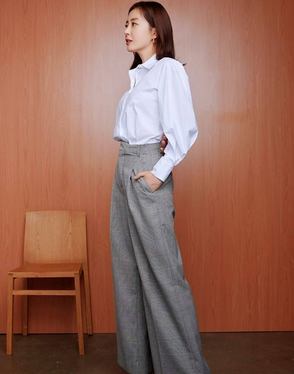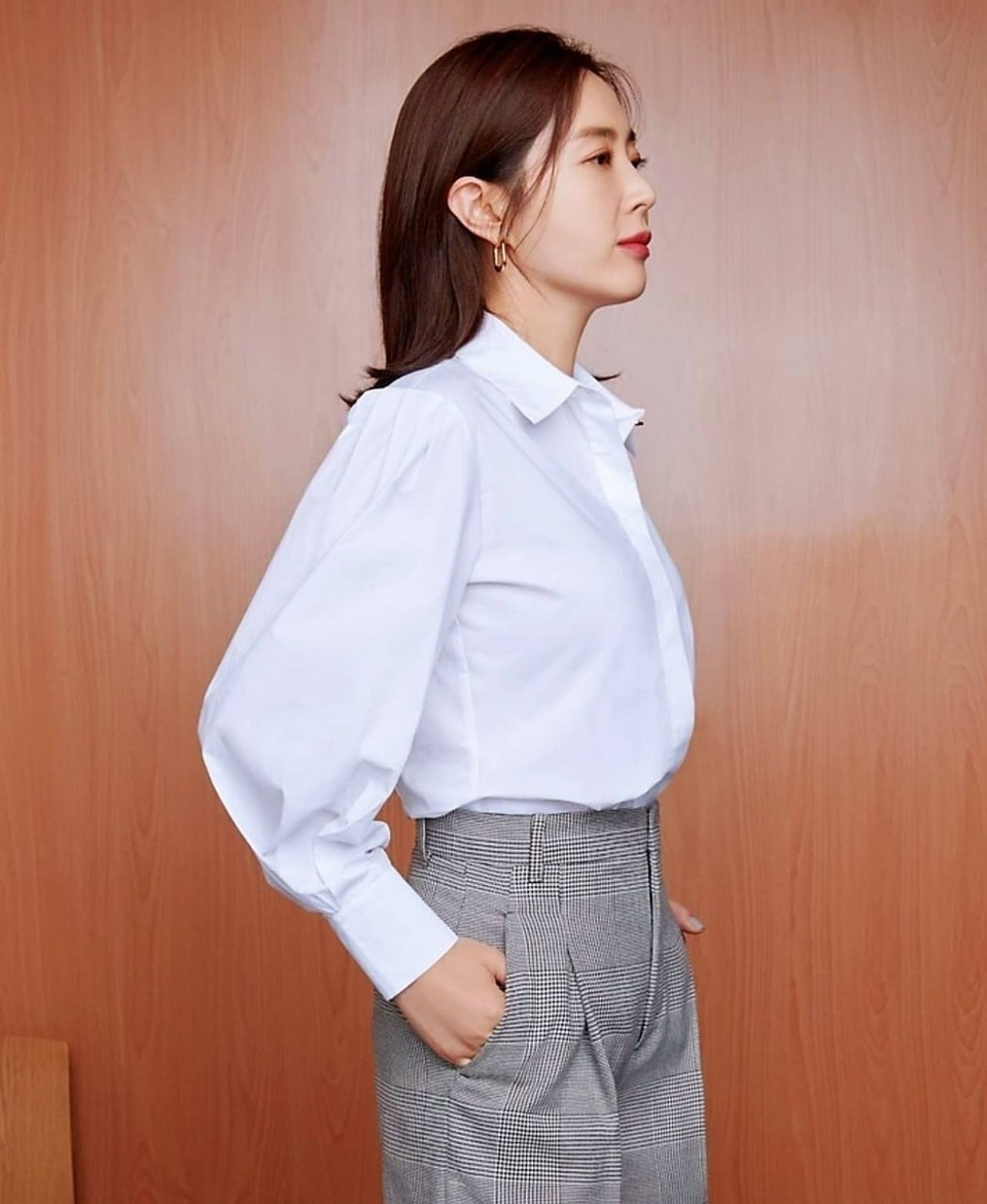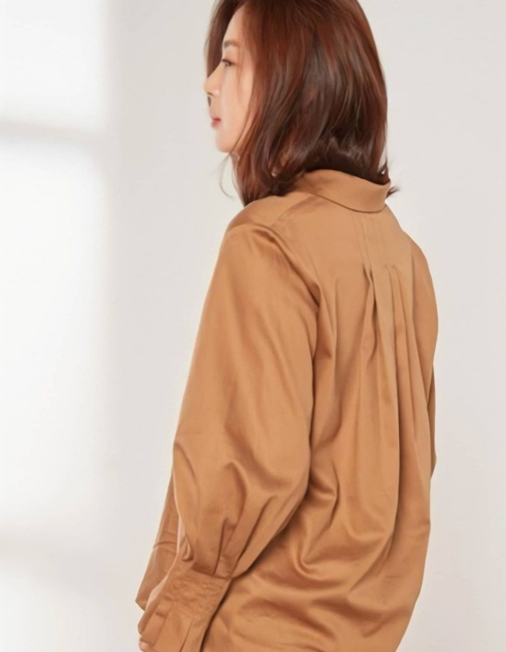 시크한 포멀룩에 잘 어울리며, 골드 브라운은 독특한 디자인의 볼륨 소매로