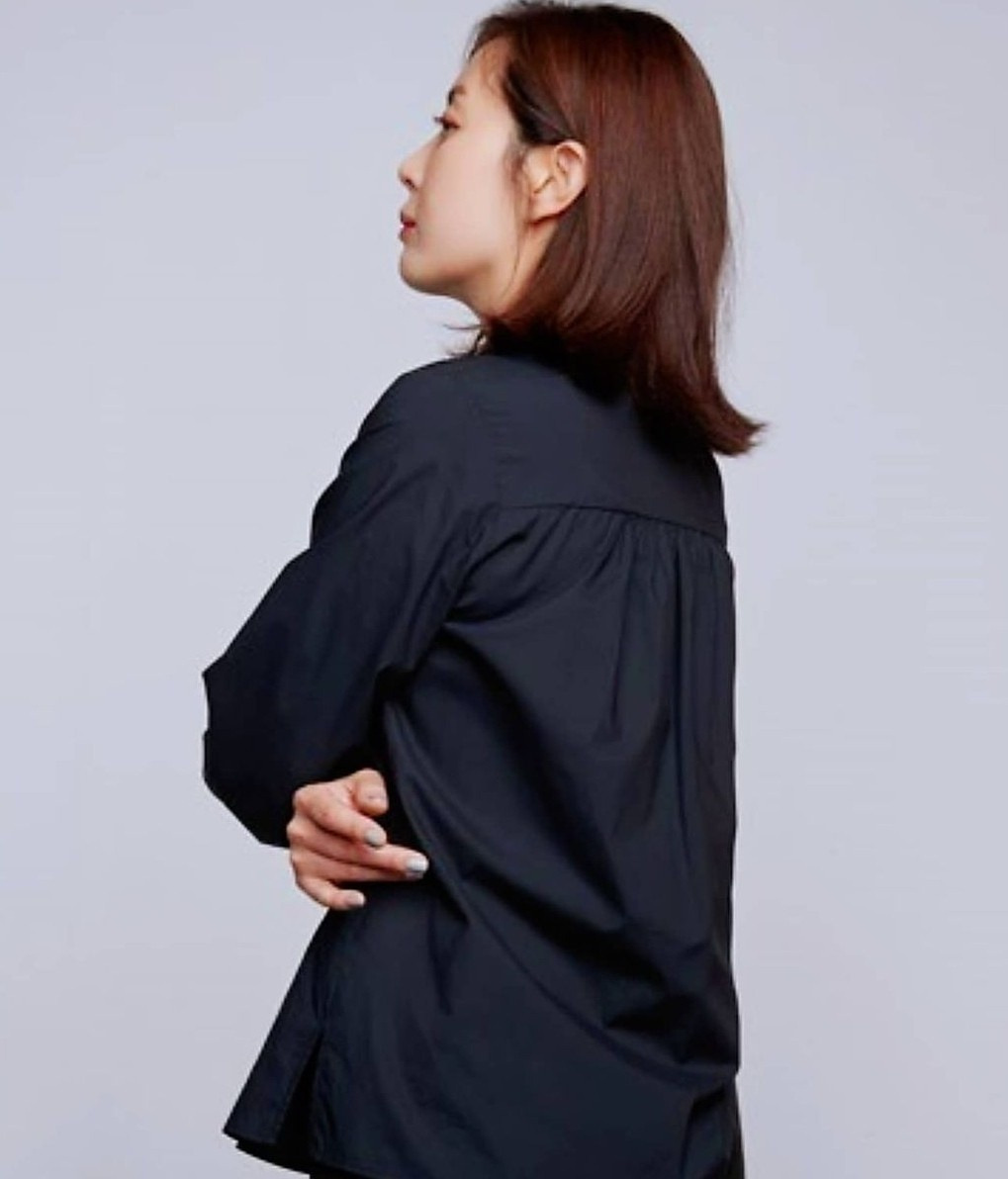 블랙은 안정감 있는 핏과 섬세한 소매 셔링 디테일로