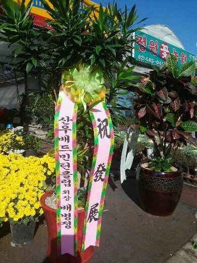 작성자장수(jsa) 작성자 본인 여부 작성자 작성시간 13.11.09 -- 응~~수국이 언니 형부가~~강남에다 대형 가든(고기집)을 개업했단다. 그래서~~외가집 형제들이 "축하 화환" 보낸거야~~이쁘지?? 사업이 잘됐으면 좋겠다~~~이모/부 걱정하지 않도록 말이야~~오늘 엄마/아빠 점심 초대받아 간다~~갔다와서 이야기 해줄께~~