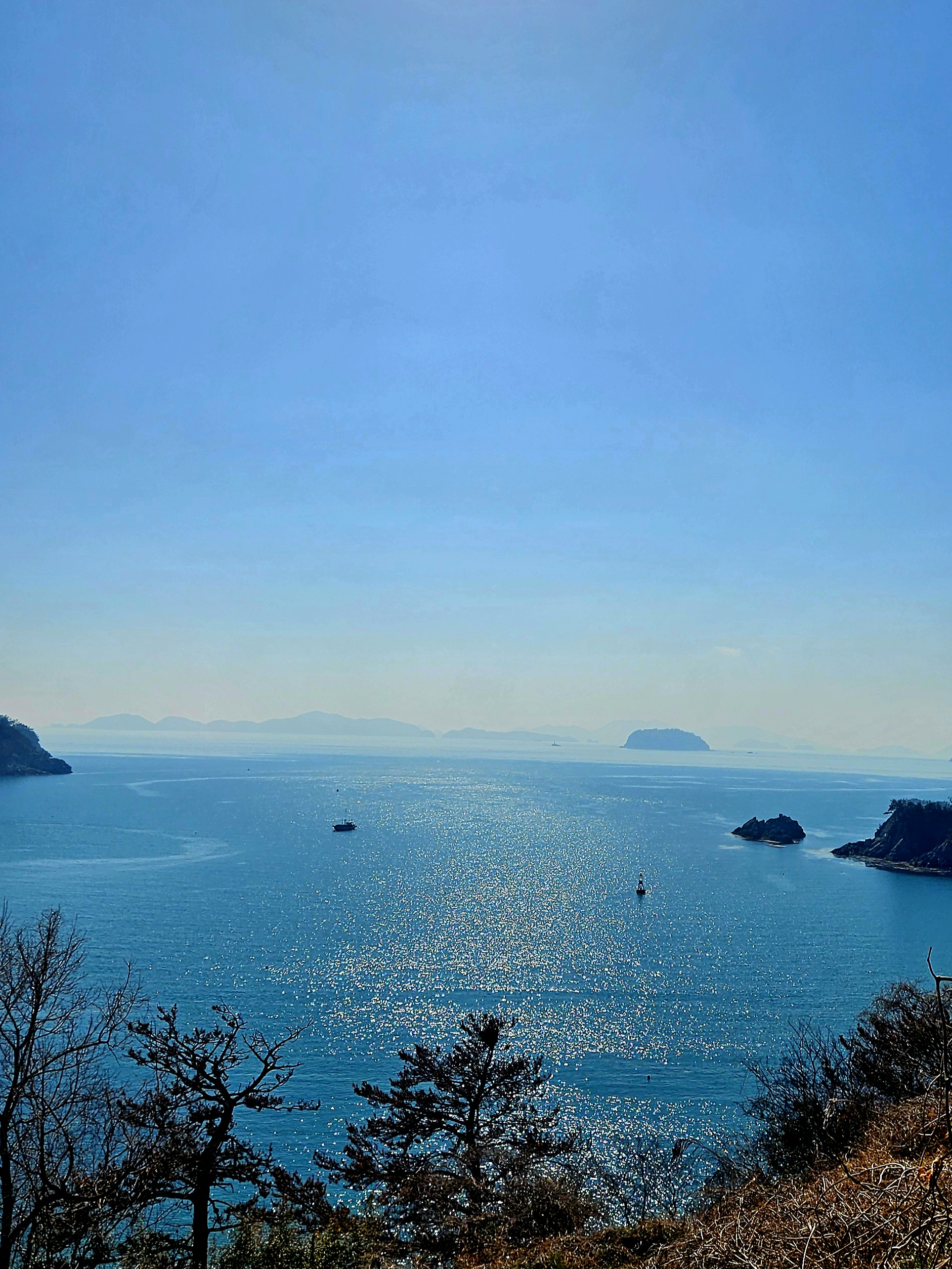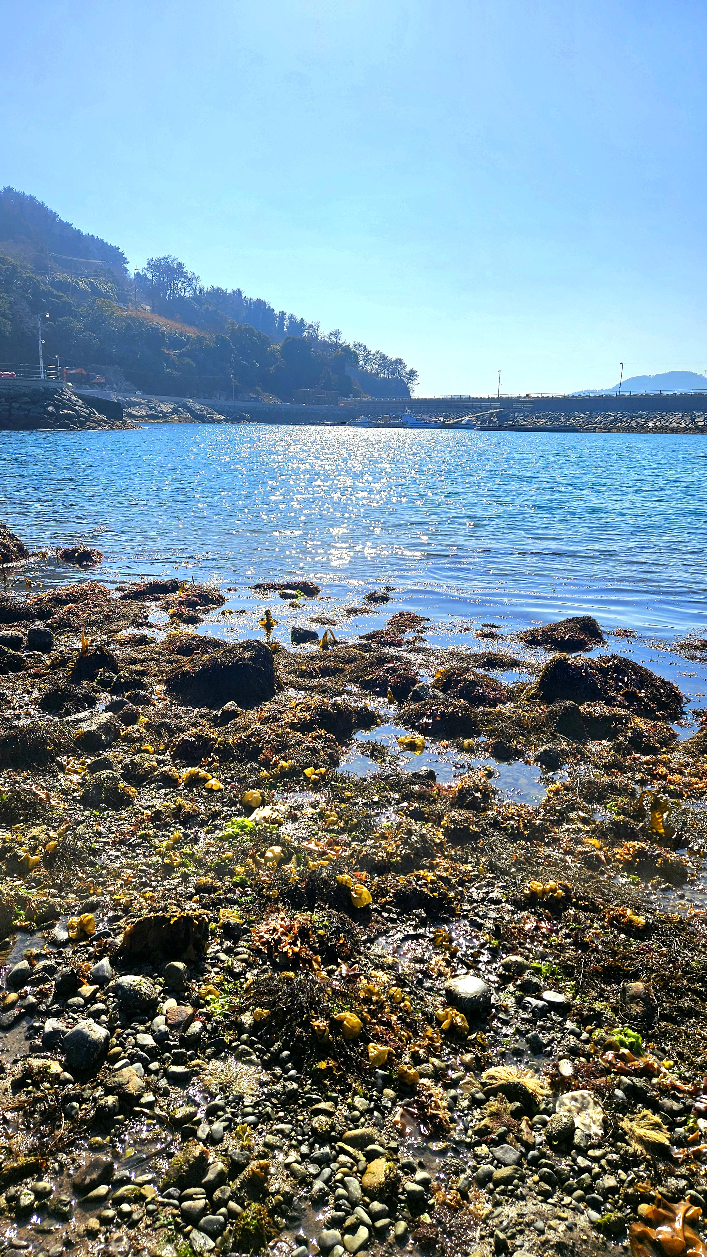 몽돌해변가에서 어린애 마냥 폴짝폴짝뛰기도
