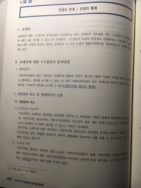 해당 문제에서 조례안에 대한 y 구청장의 통제방법에 대해서, 지자법 26조 3항 -> 107조 3항만 답안에 적시해주셨는데, 그 외에 172조 1항 -> 172조 3항 방법도 추가로 적어주어도 되는지 문의드립니다.