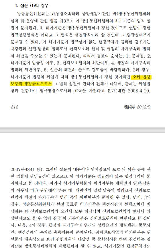 이걸 여쭤본 이유는, 김향기 교수님의 2012 강평에서 전자의 '허가기준'은 상위법령 수권이 있다면 법령보충규칙으로 볼 여지도 있는 것으로서, 그 '허가기준'의 실질이 국민의 권리의무를 규율하는 것으로 보신 것 같은데,