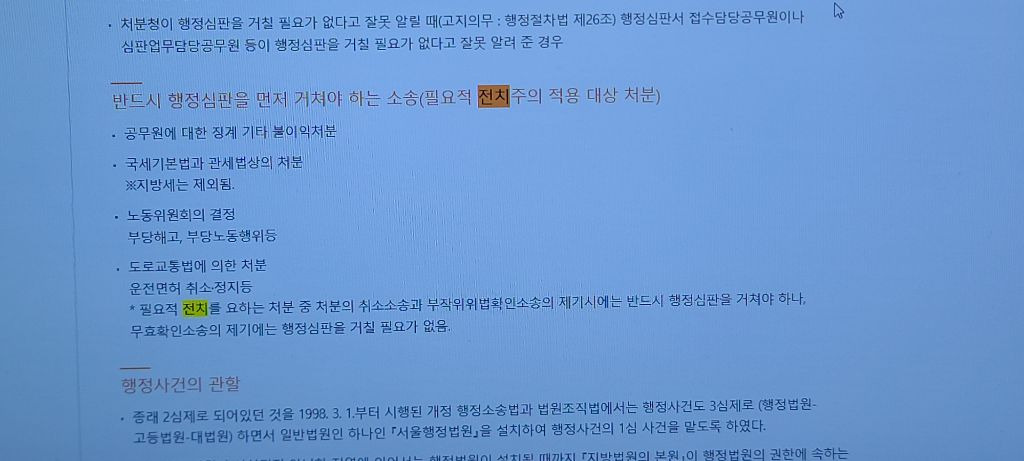 일반적인 취소소송에서 임의적 전치주의를 규정하는데,