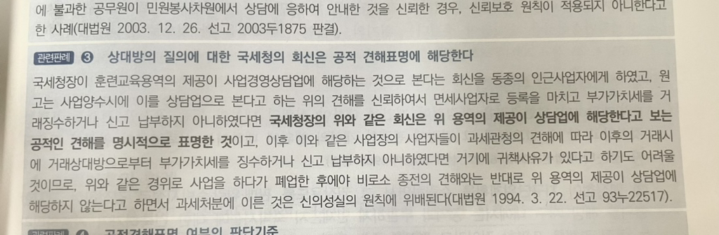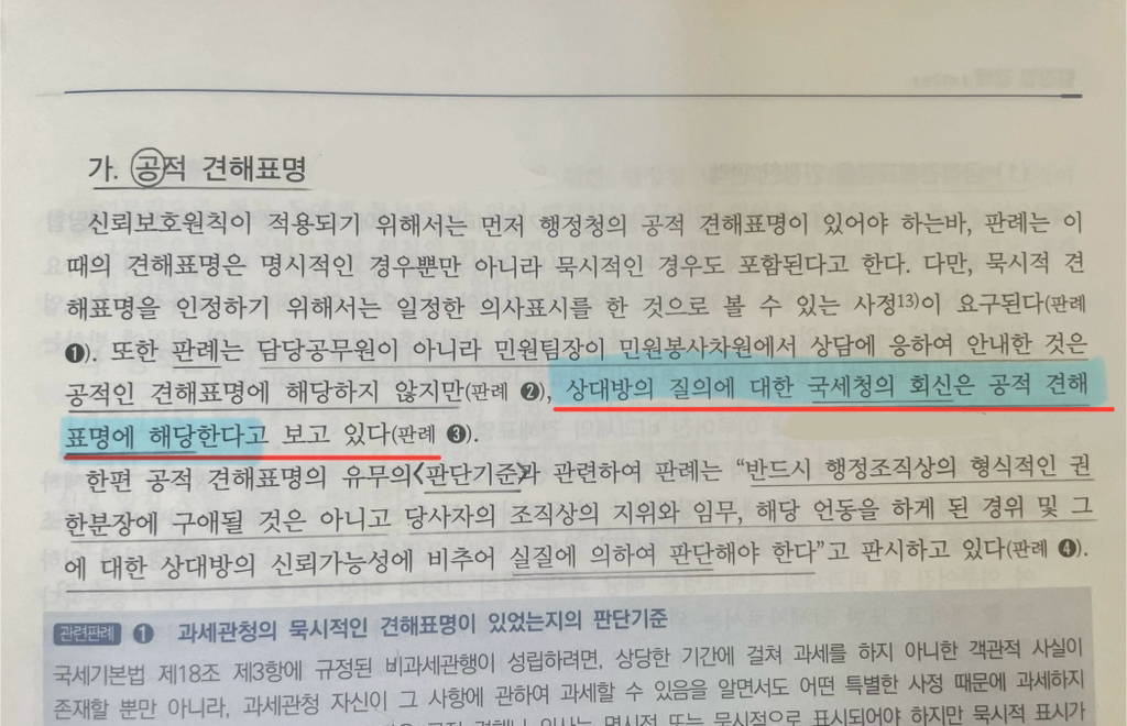 그러면 국세청의 회신이 공적 견해표명에 해당하는 것인가요? 아닌가요?