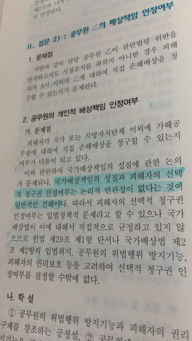 1. 그런데 각 학설의 근거가 대위책임설, 자기책임설과 결국 관련이 없는 것인가요?!보통 이 논의를 할 때 책에서는 국가배상책임의 성질에 관한 논의를 함께 쓰고 있어 헷갈리네요.