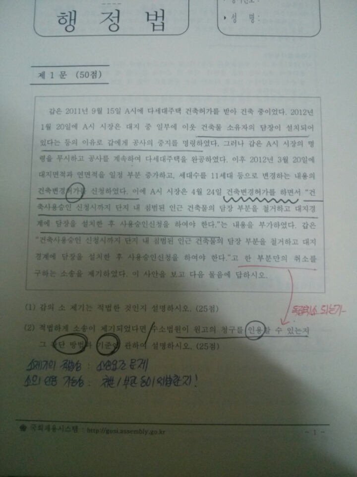 전 답안을 처음 쓸 때 내용상 한계에서 위법하다고 썼지만 사항적 한계에서 부당결부금지와 비례의 원칙까지 길게 썼거든요...한 0.8페이지 정도로요