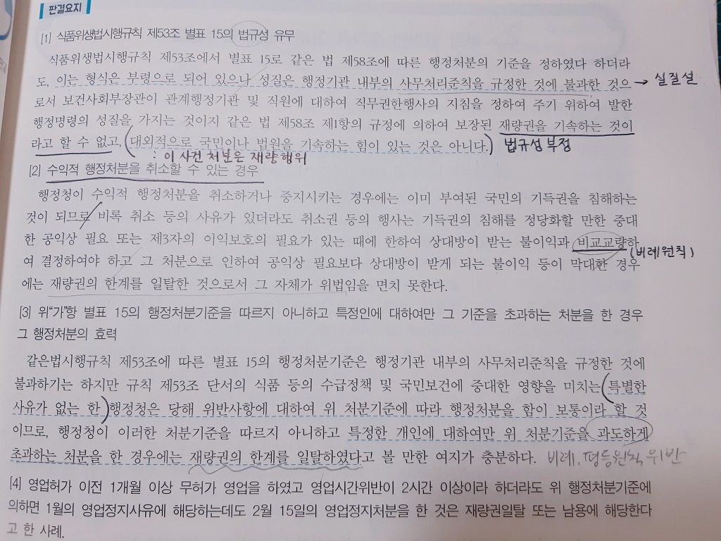 판례연습책 부령형식 제재적처분기준 부분 질문 작성자rhrnak|작성시간18.09.20|조회수136 목록 댓글 1 글자크기 작게가 글자크기 크게가 판결요지에서 꺽쇠 2번이 왜 나와있는건가요?? 판례에서 수익적행정처분을 취소하는 경우는 언급되어있지 않은 것 같아서요! 다음검색 현재 게시글 추가 기능 열기 북마크 신고 센터로 신고 댓글 댓글 1 댓글쓰기 답글쓰기 댓글 리스트 작성자정선균 | 작성시간 18.09.22 수익적 처분을 취소하거나 '중지'하는 경우에는...영업정지는 위의 중지에 해당합니다. 댓글 전체보기
