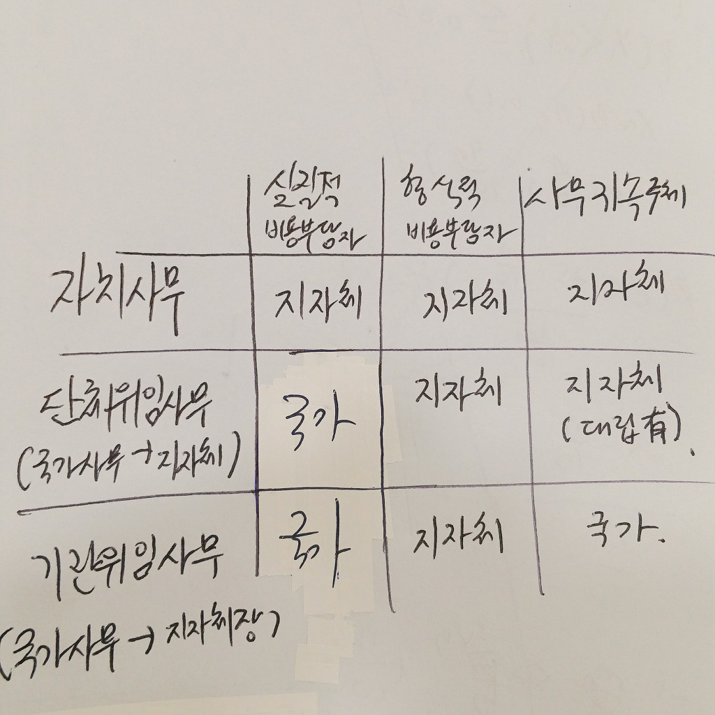 사무와 관련하여 실질적'형식적'비용부담자와 사무관리주체를 구별해보았는데 아래 제가 작성한 표가 정확할까요..?