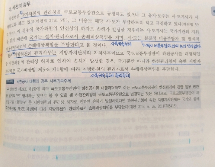 아래사진에서 하천공사 대행의 경우에는 판례 워딩에 따르면 "국토교통부장관이(지자체의) 하천공사를 대행하더라도 .... 하천관리청이 국토교통부장관으로 변경되는 것은 아니므로..."