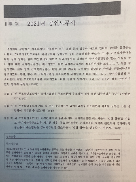 1. 작년 무효확인 소송의 기각판결의 기판력에 대한 문제의 사실관계는 소제기 시점은 21.1.7일자 처분의 송달, 수령으로 처분이 있은 날로부터 4개월 이지난 21.5.7에 제기된 소송이므로 취소소송의 제기요건을 갖추지 못한 소송입니다. 따라서 사례집의 예시답안과 같이 <제소기간이 도과한> 무효확인 소송이 기각되어 확정된 경우에는 처분이 유효하다는 부분에 대해서만 기판력이 발생할 뿐, 처분의 위법여부에는 기판력이 발생하지 않습니다.